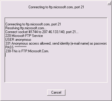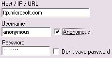 For this example, we will use the following information to connect to an anonymous FTP server. Anonymous servers are commonly used as archives where files and updates can be retrieved for various software packages. This example is our first test to make sure you can connect to an FTP server successfully.